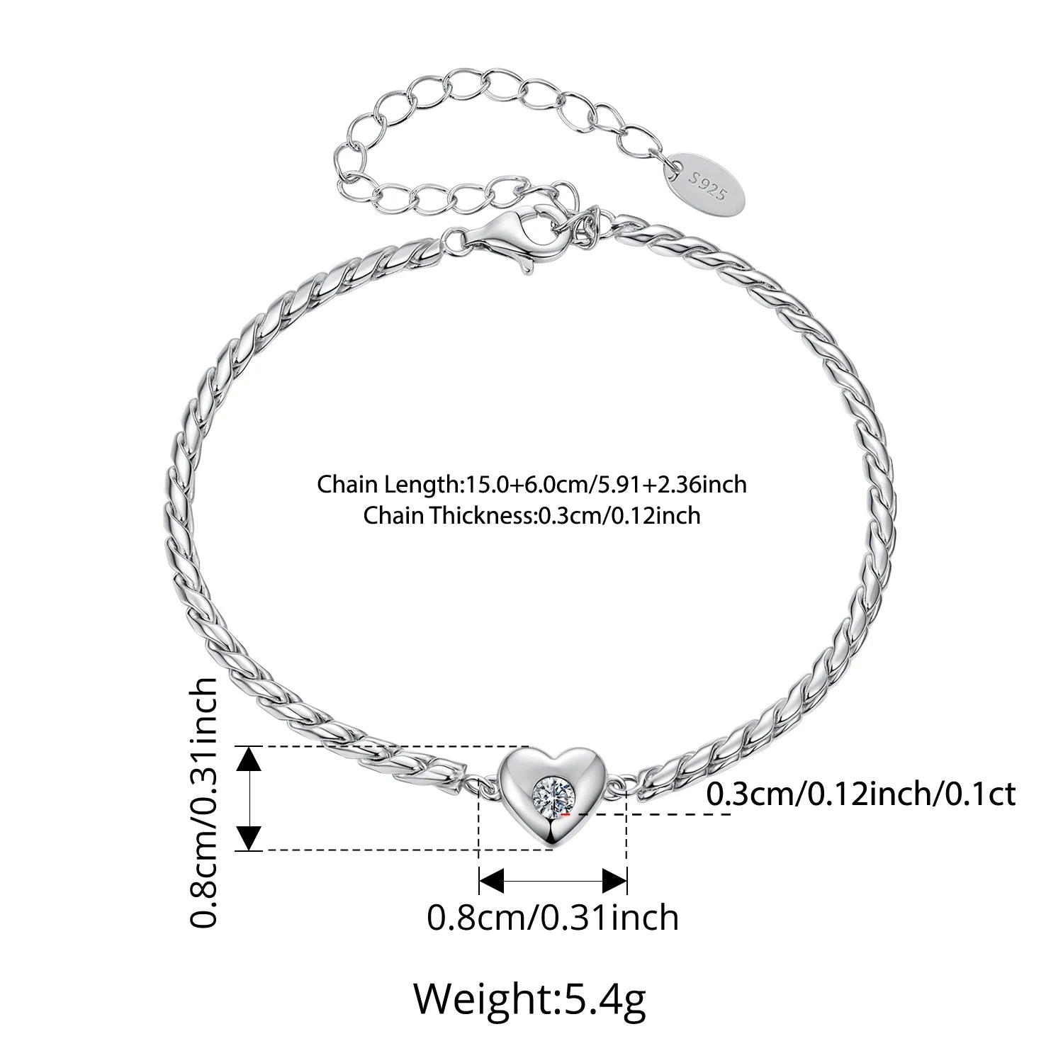 Bamoer 925 Sterling Silver Moissanite Heart Bracelet