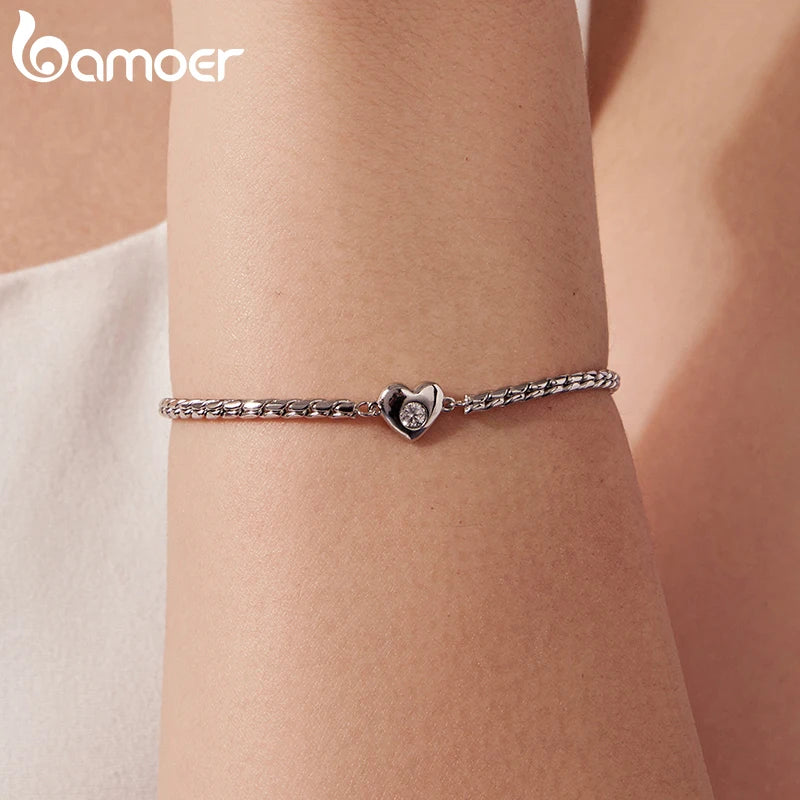 ✨ Bamoer Moissanite Heart Bracelet – Timeless Elegance of Love