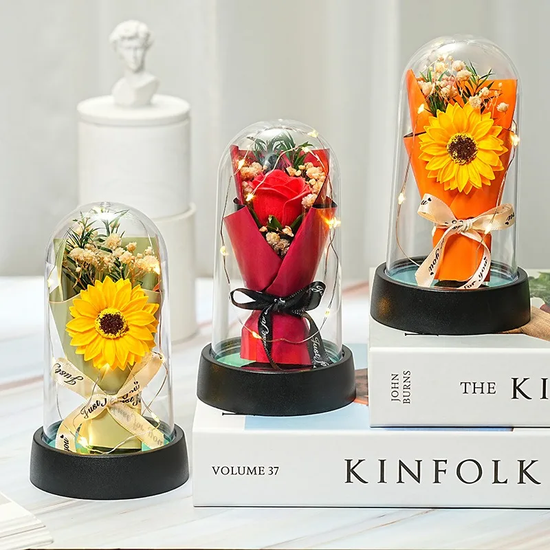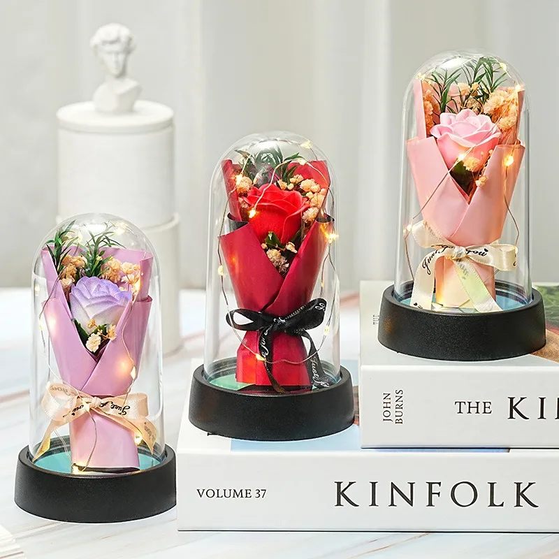 Crafted with high-quality soap flowers and durable plastic materials, each rose is delicately shaped to resemble real petals. The built-in LED light string creates a soft, warm glow with a dreamy starry-sky effect, making it a stunning centerpiece for desks, bedrooms, bedside tables, or living spaces.